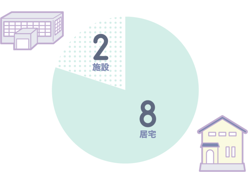 居宅8割/施設2割訪問先の内訳は、居宅が8割、施設が2割で、主に自宅でのケアが中心となっています。